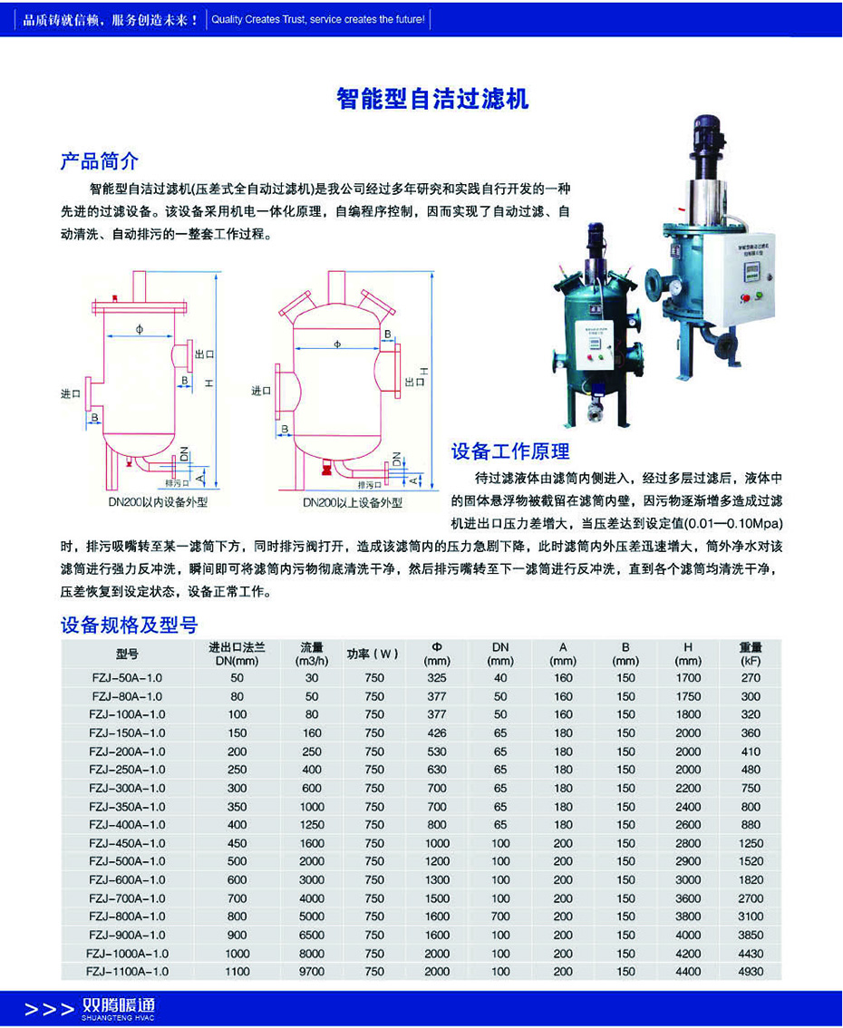 智能型自潔過濾機(jī)(壓差式全自動(dòng)過濾機(jī))是我公司經(jīng)過多年研究和實(shí)踐自行開發(fā)的一種先進(jìn)的過濾設(shè)備。該設(shè)備采用機(jī)電一體化原理自編程序控制因而實(shí)現(xiàn)了自動(dòng)過濾、自動(dòng)清洗、自動(dòng)排污的一整套工作過程。